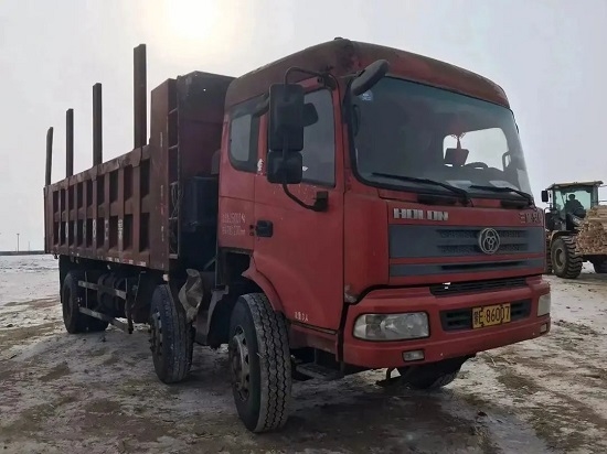 现场部交付车司机王日辉按作业顺序正在等待装载板材,装车后交付市内木材加工厂。