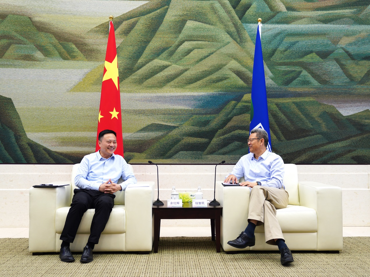 8月10日,中林集团党委书记、董事长余红辉在杭州拜会浙江省委书记、省人大常委会主任袁家军,双方围绕加强央地合作,以做实国家级绿色发展双碳平台,助力浙江省高质量发展建设共同富裕示范区进行深入交流。浙江省