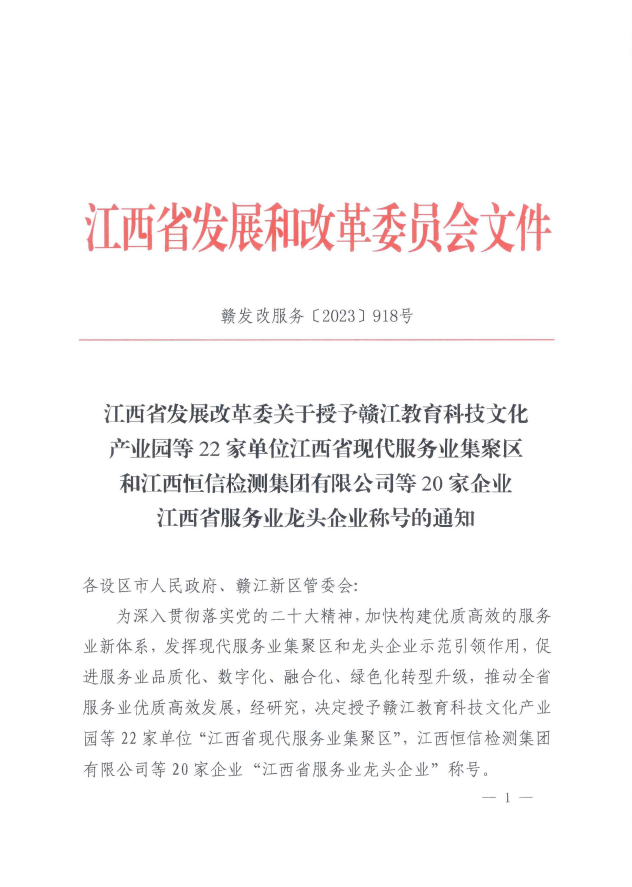 喜报 | 瑞昌华中公司荣获“2023年度江西省服务业龙头企业”称号