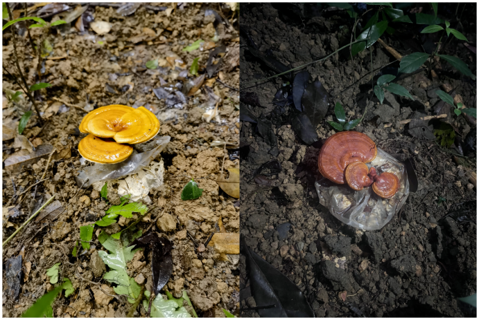 赤灵芝是多孔菌科植物,也是一种药用价值很高的真菌。其表面红褐色,有光泽,像是一朵五彩蘑菇。赤灵芝全株入药,具有补益气血、治疗心脏病、降糖、保护肝脏等功效。