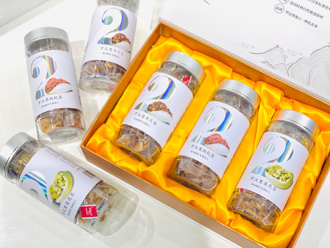 “中林山宝”花茶礼盒集合了罗汉果菊花茶、罗汉果枣片茶,以及罗汉果枸杞茶,其以袋泡茶的形式让更多人能够更方便地品味罗汉果茶饮。这三款茶饮具有利咽保护嗓子、清肺止咳等功效,且从原材料到产品生产,均严格按照食品安全有关标准加工生产。