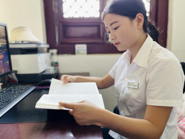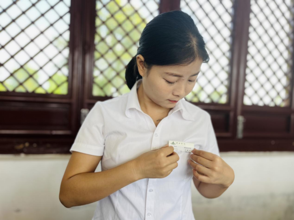 宋琦做好讲解员岗前准备工作并佩戴工牌