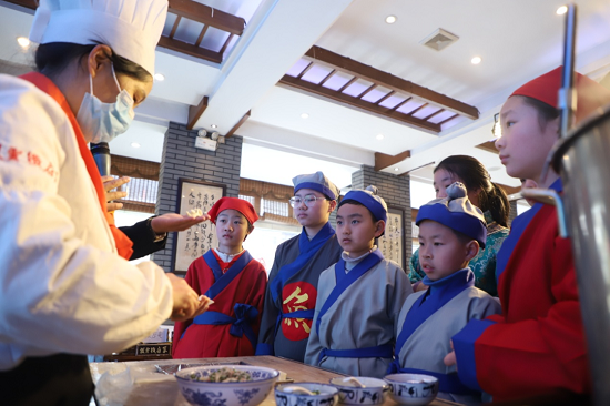 文化不仅是企业的生命力,也是企业的生产力。作为非物质文化遗产传习基地,公司积极拓展推广非物质文化遗产“披云徽府菜”。“披云徽府菜”既是对传统的致敬也是对创新的演绎,徽菜中的酸、甜、苦、辣、咸等口味,经改良后,已经较适合现代人,但没有改变原始的做法与风貌。例如一道“鱼头滚豆腐”以徽州“砚台”和“古城墙”为底座,结合李白游徽州的典故,找准文化与商业的结合点,将家常土菜变为兼具经济和文化价值的菜肴。如今披云山庄已培育出一大批非遗传承人,将“工匠”精神注入非遗传承之中,对徽州传统文化的继承和发扬做出了有力的推动作用,也为企业高质量发展注入活力。