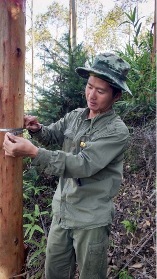 莫锦权在测量桉树胸径