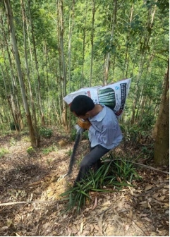 岑溪山高,坡陡。树苗、肥料、药品、工具等生产物资以及工人的生活必需品得靠皮卡车、摩托车运输上山。有时遇上摩托车也通不过的鸡肠小路,只能纯靠手搬肩扛。