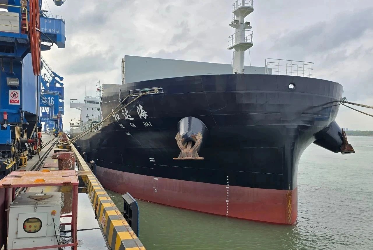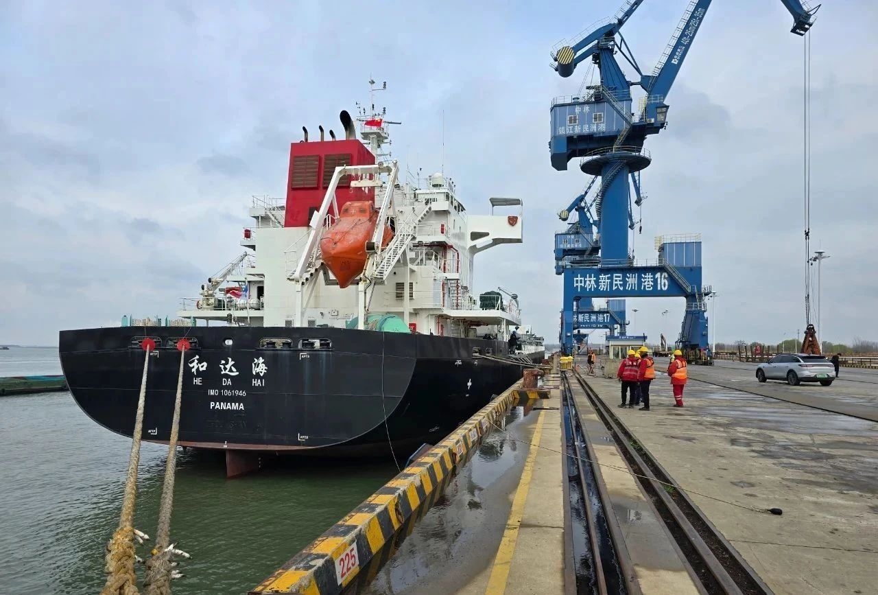 中林新民洲港实现单船最高方量柳杉原木接卸