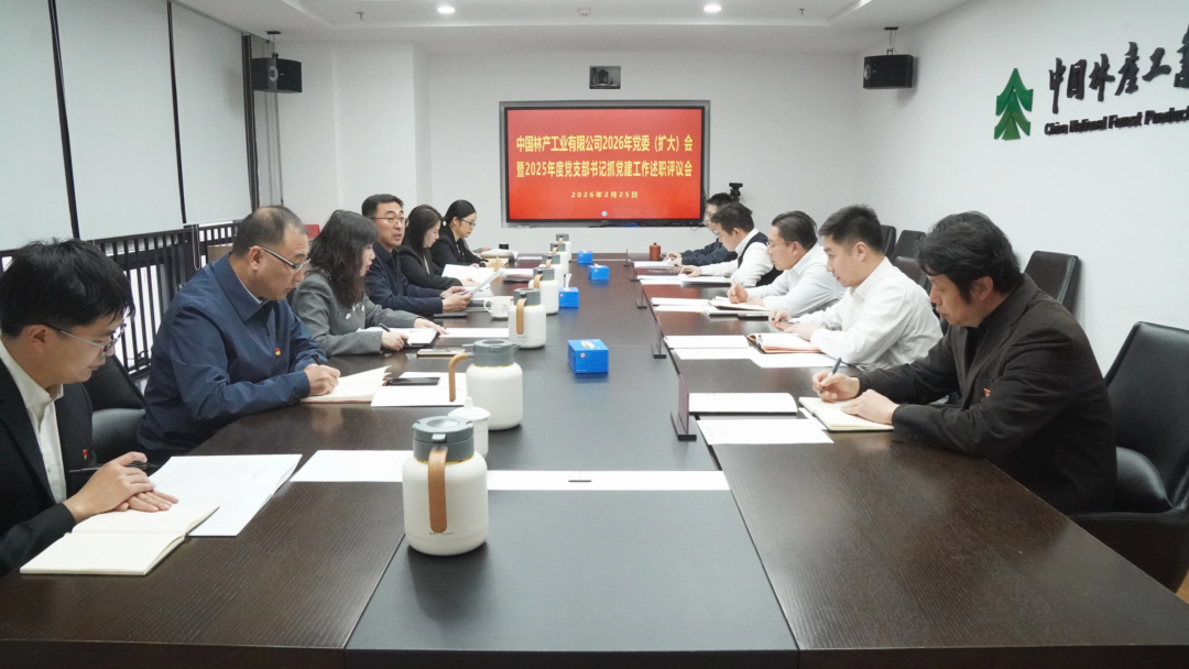2月25日,中国林产工业有限公司党委召开2025年度党支部书记抓基层党建工作述职评议会议,深入学习贯彻习近平总书记对中央企业工作作出的重要指示精神,全面总结基层党建工作成效,分析存在问题,明确改进方向,进一步压实管党治党政治责任,推动基层党组织全面进步、全面过硬。公司党委书记、董事长吕锦程主持会议并讲话,集团党委督导组组长董芳到会指导并作点评。