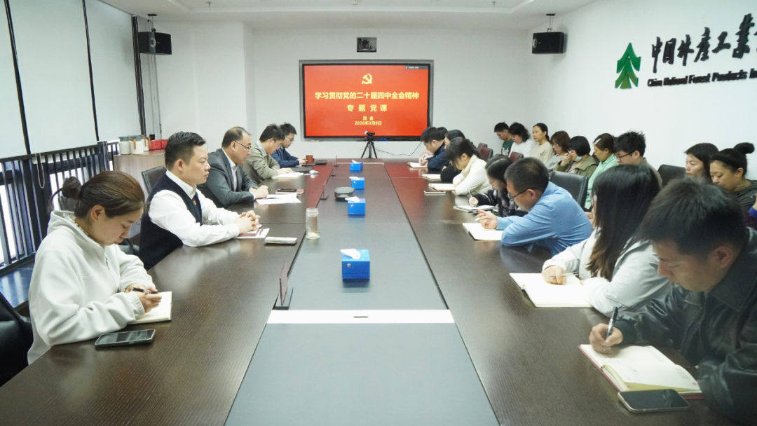 3月9日上午,中国林产工业有限公司党委委员、总会计师樊金为分管部门及所在第二党支部讲授了题为“深入学习贯彻党的二十届四中全会精神”的专题党课。本次党课旨在深入领会全会的重要意义,深刻把握全会精神的实践要求,以高质量党建引领公司高质量发展。