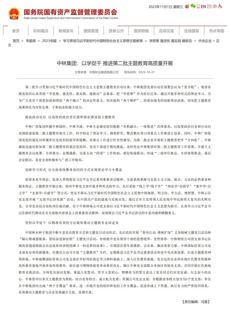 【国资委网站刊发】中林集团:以学促干 推进第二批主题教育高质量开展 |