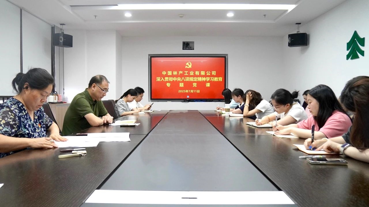 7月11日上午,中国林产工业有限公司总会计师樊金为分管部门所在党支部讲授深入贯彻中央八项规定精神学习教育专题党课。