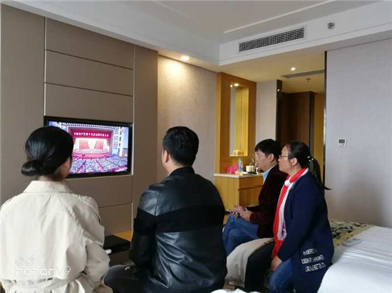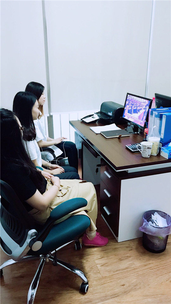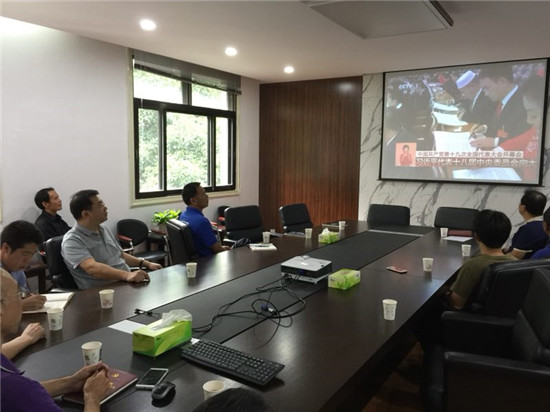 10月18日,党的十九大胜利召开。这次在全面建成小康社会决胜阶段、中国特色社会主义发展关键时期召开的盛会,聚焦了全中国、全世界的目光! 在中国林产工业公司大家庭里也洋溢着饱满的爱党爱国热情。上午9点,伴随着雄壮的国歌声,分布在林产公司本部及下属企业近10个不同地域的近60名党员、团员和上百名干部职工,通过电视、手机、电脑、收音机等第一时间收听、收看十九大开幕会实况转播。 林产公司会议室,全体干部职工集体观看了十九大开幕会盛况,聆听了习总书记所作的十九大工作报告。对部分出差、休假等未能收听收看直播的党员和员工,将利用电视重播、报刊报道、网络视频等形式进行“补课”。 公司总经理、党委副书记孙良志在观看完十九大开幕会后表示,报告举旗定向、气势恢宏、鼓舞人心、催人奋进;是夺取新时代中国特色社会主义伟大胜利的政治宣言和行动纲领,全体干部职工要牢固树立“四个意识”,强化创新意识,弘扬工匠精神,不忘初心,继续前进,把公司打造培育成国内领先、世界一流的企业。 中国林业集团江西枫禾实业有限公司组织收看 福人集团公司组织收看 中林集团福建宜森实业有限公司组织收看 中国林业集团福建福人源木实业有限公司组织收看 天津宝沃国际贸易有限公司组织收看 仓库一线代表收看 中林集团江苏聚成木业有限公司组织收看 通道县挂职副县长(扶贫)王挺观看十九大直播 观看完十九大开幕会后,林产公司干部职工倍感振奋、深受鼓舞,纷纷表示,要把学习贯彻十九大精神与做好本职工作结合起来,撸起袖子加油干,以改革创新精神促进企业的大发展,为十九大宏伟目标的实现作出积极贡献! 相关信息