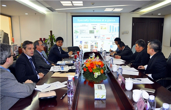 公司副总经理刘江提出林产公司与天柏公司在纸浆产品上已达成国内独家代理协议,希望继续深化贸易合作范畴,寻找在木材、板材领域的合作契机。 与会期间,双方正式交换了TEMBEC溶解浆产品的中国大陆地区独家代理协议。双方人员还就产品技术指标、产品用途及市场推广等议题进行了交流。 TEMBEC公司研发及技术总监Denis Sens,客户技术服务总监Jean Barrettte,亚洲区销售总监Fernando Fu,中国林产工业公司贸易二部副经理覃磊,满洲里福瑞斯进出口有限公司总经理万磊,贸易二部王威、马宏宇等陪同参加会见。 相关信息