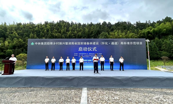 7月31日上午,中林集团助推乡村振兴暨湖南省国家储备林建设(怀化·通道)高标准示范项目启动仪式在通道县牙屯堡镇举行。单忠立出席仪式并宣布项目启动。国家开发银行湖南省分行党委委员、副行长方磊,怀化市副市长杜登峰出席仪式并讲话。中林湘投、通道县、湖南省林业局相关负责人参加。 单忠立表示,通道国家储备林项目作为中林集团在湖南启动实施的第一个国家储备林项目,既是落实国家“双碳”战略的重大举措,也是集团践行央企担当、以生态振兴助力通道乡村振兴的大事喜事。中林集团将以此为契机,在通道县生态产业高质量发展路上深耕细作,共同打造央地合作乡村振兴新样板,打通通道从“脱贫”到“发展”的幸福路,为湖南林业高质量发展和乡村振兴贡献力量!