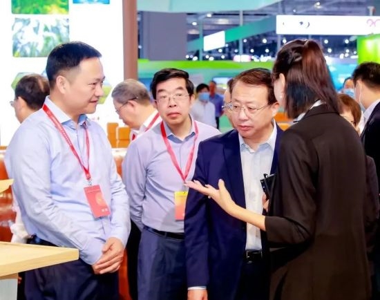 中林集团党委委员、副总经理翁文林,办公室、科技管理部、中林时代公司、中林生态公司相关负责同志陪同巡馆。 依托碳博“聚光灯”效应 全新赋能生态绿色低碳产业 本次碳博会,中林集团展示内容以“碳寻·中林”为主线贯穿,围绕“绿色、低碳、创新、合作”四个维度,集中展示了中林集团近年来在科学扩绿、木本油料作物、零碳景区、零碳湖泊、生物质能源、菌草循环利用、竹缠绕技术、菌草人造板、装配式木结构等项目的特色亮点与技术成果。