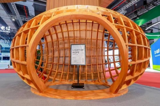 建筑行业的低碳产品——全木制结构件 在固碳创新方面,中林集团还展示了一件名为“希望之光”的全木制结构件,为全透光设计,寓意着“中林人”眼中有光,心中有梦,对未来充满着希望。今年以来,中林集团通过产业体系谋划、资源整合、项目合作、产业培育及产业链延伸,不断推动装配式木结构产业发展,更好地实现生态产品永久固碳,为建筑行业绿色低碳发展提供了解决方案。