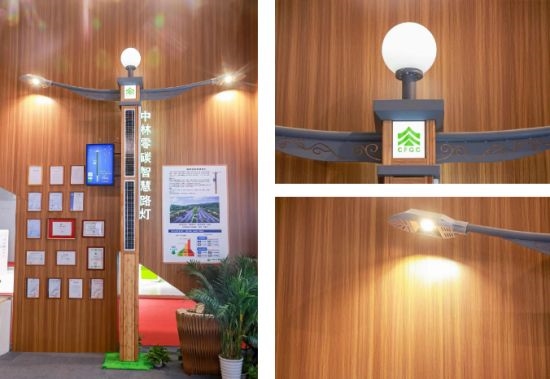 大功率零碳光能智慧路灯让出行更环保 在节能减排方面,中林集团带来了全新产品——大功率零碳光能智慧路灯,其采用大功率COB路灯散热技术,被国家科技部鉴定为国际先进水平;搭载了独立的光能发电、转换、储能等装置,配备无线远程控制、环境监测、数据采集、发布等智能系统,实现数字化、网络化管理。灯杆部分采用竹缠绕技术制作,安装便捷,无需布线,支持连续15个阴雨天照明用电,相比传统市电照明方式,节能百分百,减少更多碳排放。
