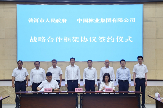 5月26日,中林集团党委委员、副总经理李留彬在普洱与普洱市委副书记、市长王刚会谈,并共同见证中林集团与普洱市人民政府签署战略合作协议。中林集团森林资源管理部副部长黄楚婷与普洱市副市长吴学榕分别代表双方签约。