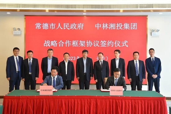 在4月25日举行的中林湘投与常德市人民政府战略合作框架协议签订仪式上,单忠立表示,在全党上下深入开展学习贯彻习近平新时代中国特色社会主义思想主题教育之际,双方签署战略合作框架协议,体现了落实国家重大战略的政治自觉与使命担当,既是深入贯彻习近平生态文明思想,服务国家“双碳”战略的生动实践,也是央地合作共同推动高质量绿色发展的有力举措。希望双方以此次战略合作协议签订为契机,在国家储备林及油茶基地建设等方面加强对接、深化合作,共同推进常德500万亩国家储备林项目建设,助力常德林业产业高质量发展。 常德市委副书记、市长周振宇对成功签署战略合作框架协议表示祝贺。周振宇表示,中林湘投与常德市人民政府签署合作协议,建立长久的合作伙伴关系,必将实现双方的互利共赢。真诚希望中林湘投进一步发挥自身优势,加快项目落地步伐,不断拓宽合作领域,将优秀的人才、雄厚的资金、精湛的技术、先进的理念和务实的企业精神带入常德。常德市委市政府将以最诚挚的热情、最务实的作风、最贴心的服务,为项目建设和企业发展创造最优的环境,全力以赴为项目建设保驾护航。 根据战略合作框架协议,双方将在湖南常德市分批分期建设500万亩国家储备林,推动常德市林业产业高质量发展,助力乡村振兴。
