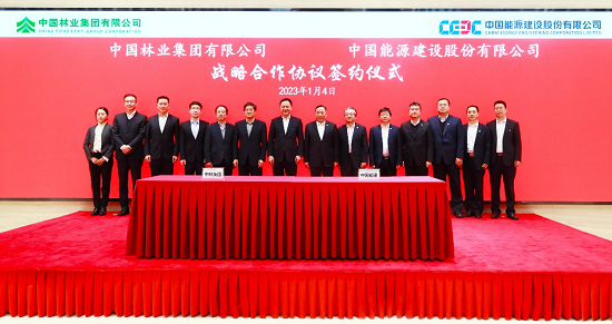 1月4日,中国林业集团有限公司与中国能源建设集团有限公司在京签署战略合作协议。中林集团党委书记、董事长余红辉,中国能建党委书记、董事长宋海良出席并见证签约。中林集团党委委员、副总经理黄其正,中国能建党委常委、副总经理吴云分别代表双方签署合作协议。 签约仪式前,余红辉与宋海良就践行国家“双碳”战略,加强多领域合作,共促绿色低碳融合发展进行深入友好交流,并达成广泛共识。