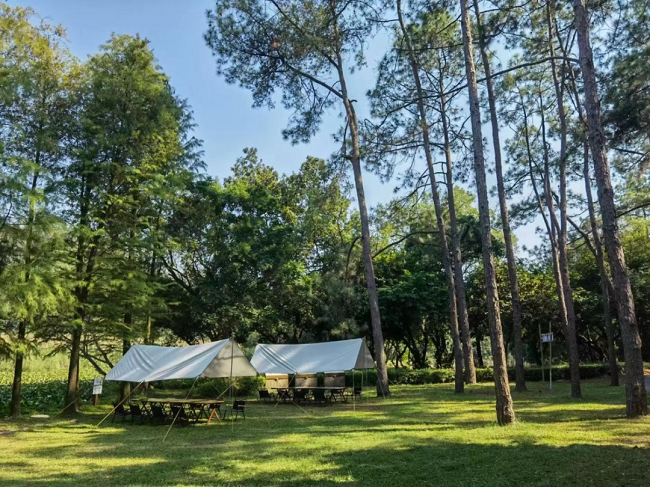 尽管修修补补能节省经费,中林生态城还是放弃了成本控制,果断拆除破损、闲置、影响公园景观的设施,在腾退区域补植青草、补种苗木。 季节更迭,游客可以春观花、夏纳凉、秋见果、冬赏松,自然生态缤纷,景观永不落幕。 将文旅创新、民族文化元素融入公园的科学生态规划,因地制宜,设立自然研学课堂、开辟森系露营地和森林康养基地等景观空间,更多亲近森林的选择摆到了游客跟前。 几十种国家重点保护植物,被公园视为生态科普课堂的生动教材。参与“寻找树王”的孩子、大人,在研学导师引导下,通过定向越野,踏上网红地,打卡世界上最高的望天树,最毒的“见血封喉树”箭毒木,“刀枪不入”的蚬木……一趟“红木之旅”下来,他们忍不住感慨,这是一个“植物王国”、一座“植物博物馆”、一本“植物百科书”。 “这棵麻栎树树龄50年,胸径70公分,树高30米。游客扫一扫二维码,就能看到它的树木档案。我们在树旁增设围栏、放置灭火器,防范火灾隐患”,生态城副总经理林森说,“公园派管护员巡查,掌握树木自然生长情况、病虫害发生迹象,还定期用物理防治、生物防治的方式除虫。一旦发现古树周边的藤蔓过度延伸、缠绕,既不会忽视,也不会过多干预,适时适当适度地修剪,尽可能让它们保持自然生长。” 酷暑,这片亚热带森林却是阴凉、舒适的小气候,游人可以参与“时光森林”——树木认养活动,亲笔记录认养树木的生长状况,写下自己与森林的故事,抒发人与森林间的情感。经年累月,一页页笔记与一张张树木观察表,汇集成一册自己专属的时光森林典籍。 公园替认养者将《时光森林》珍藏在“森林乌托邦”——森林图书馆的特定书架,静候他们随时取书品读。人们回味时光印记的同时,“植绿护绿、低碳环保、生态和谐、绿色成长”的生态理念汇入心间。 在凤江山水之间,公园打造的“城市会客厅”漫林碧透、鲜氧环绕,一家老小、三五好友幕天席地,在这个绿色家园参与生态科普绿色论坛、保护濒危动植物自然课堂、珍稀动植物图片展览、自然音乐会、生态露营、自然市集等主题活动。 风景无限美,生态产品新