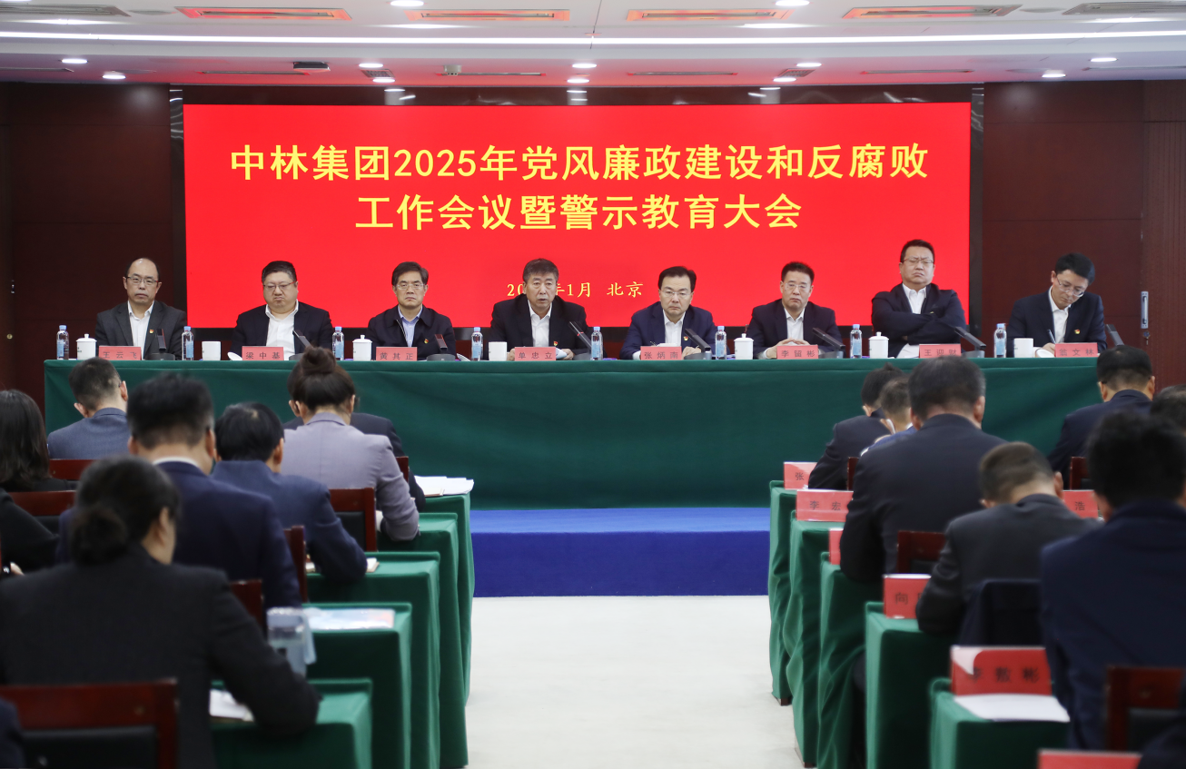 单忠立强调,落实管党治党政治责任,关键在“一把手”,各级党组织书记要在旗帜鲜明讲政治中扛起“第一责任”,带头加强思想淬炼,带头遵守政治纪律,带头履行全面从严治党主体责任清单;要在一严到底抓作风中践行“第一责任”,真抓实干、艰苦奋斗、敢于尽责;要在团结引领带队伍中担好“第一责任”,坚持公道正派、民主集中和示范带动;要在风清气正优生态中彰显“第一责任”,把严的主基调贯穿始终,进一步匡正选人用人风气,把对党忠诚作为最基本的党性和第一位的要求,以自己的一身正气带动整个干部队伍风清气正。 集团2025年党风廉政建设和反腐败工作会议暨警示教育大会 1月17日,中林集团召开2025年度党风廉政建设和反腐败工作会议暨警示教育大会,传达学习二十届中央纪委四次全会精神和国务院国资委2025年党风廉政建设和反腐败工作会议精神,总结2024年集团党风廉政建设和反腐败工作,通报典型案件,开展警示教育,部署2025年重点工作。集团党委书记、董事长单忠立出席会议并讲话,集团党委副书记、董事、总经理张炳南主持会议并传达学习党中央、国务院国资委有关会议精神,集团党委委员、纪委书记王云飞通报典型案件并作纪委工作报告。集团党委班子成员黄其正、李留彬、梁中基、王迎财、翁文林参加会议。