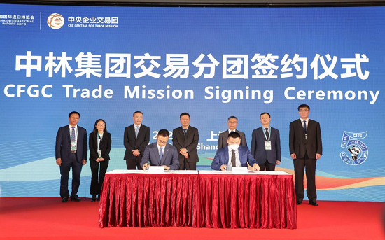 11月10日,第五届中国国际进口博览会正式闭幕。本届进博会是党的二十大胜利闭幕后我国举办的首场重大国际展会,是宣贯党的二十大精神、贯彻落实中国式现代化、推进高水平对外开放、推动构建新发展格局的重要平台。在六天时间里,全球客商再赴进博之约,大力拥抱“中国机遇”。 五年之约,初心不改。作为我国林业行业唯一央企,中林集团连续五年深度参与进博会,持续扩大与国际知名企业的交流合作,不断增强对全球林业资源的配置能力,国际化经营水平持续提升。 合作签约 成效显著 本届进博会,中林集团抢抓国际采购、投资促进、人文交流、开放合作的宝贵机遇,紧密围绕集团公司“四个大规模”和“四个抢占”战略部署,积极推进与境外优质企业在产业、贸易、投资、技术、人才等方面的交流协作,着力构建对外务实合作新格局。 在11月7日的集中签约仪式上,中林集团交易分团与多家企业进行现场签约。集团所属中林时代、林产工业、林产品、林场等公司分别与来自新加坡、智利、俄罗斯、芬兰、德国、加拿大等国家和地区的知名企业签署国际采购协议,合作领域涉及木结构技术服务、原木、板材、木浆等多种大宗商品,与境外供应商进一步巩固合作,为我国木材安全与木结构产业高质量发展夯实基础。