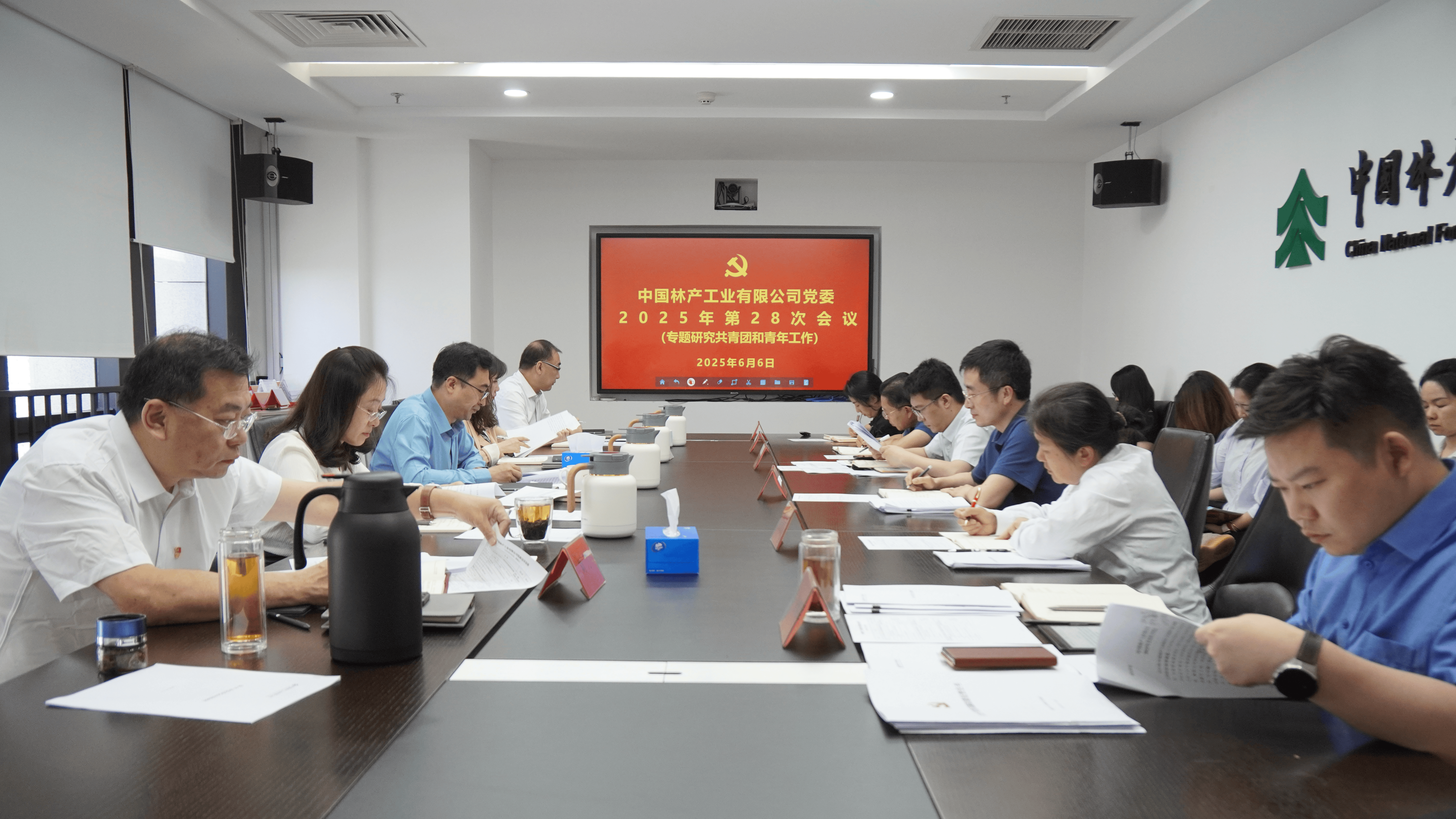 6月6日,中国林产工业有限公司党委召开会议,专题研究公司共青团和青年工作,深入学习贯彻习近平总书记关于青年工作的重要思想,引导广大青年坚定理想信念,勇担时代使命。公司党委副书记、总经理吕锦程主持会议并讲话。
