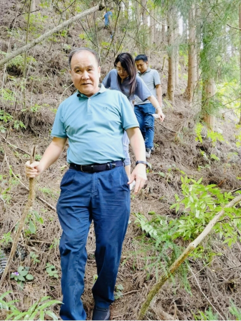 陈悦踏勘林地 林深草密、林路崎岖,造林前辈陈悦跟大家一起外业林调,同事劝说他:“您别进林子了。”但总拗不过他的坚持。每每遇到难走的林路,大家一不留神,他就悄悄走到了最前面,一走就是两、三个小时。 但他从不说累,还笑着说:“我没事的,这片林子看起来真的不错,很漂亮呦”,一天工作结束,披星戴月,他前行的身影,坚定而温暖,鼓舞着每一个广西中林人。