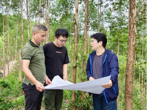 记录测量数据 贺州事业部以艰苦奋斗为根基,挥洒汗水擦亮青春底色 广西中林国控投资公司贺州事业部是年轻的事业部,团队平均年龄仅25岁。事业部在成立之初,就面临法拍林地接收、经营管理、不动产登记证办理以及林地林木收储等多任务的模式。 有一次,雇佣的民工临时退场,导致肥料无法搬运到存放点,堆在林地里的肥料无人清点。当时事业部仅有3名员工,获悉后,他们二话没说,起身前往林地清点肥料,3个小伙子顶着39°的高温一趟又一趟搬运,衣服湿了干、干了又湿, 2300袋肥料被搬到目的地,确保了公司物资安全,亮出了青春本色。 自“百日攻坚”以来,贺州事业部的年轻人主动放弃了周末,放弃了节假日,连续奋战90多天,日工作时长超过12小时,踏查林地5.5万亩,达成收储1.45万亩,完成法拍接收林地1.4万亩,开展营林施工3350亩。
