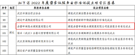 中林集团赤壁陆水湖项目入选“2022年国家级旅游服务标准化试点” |