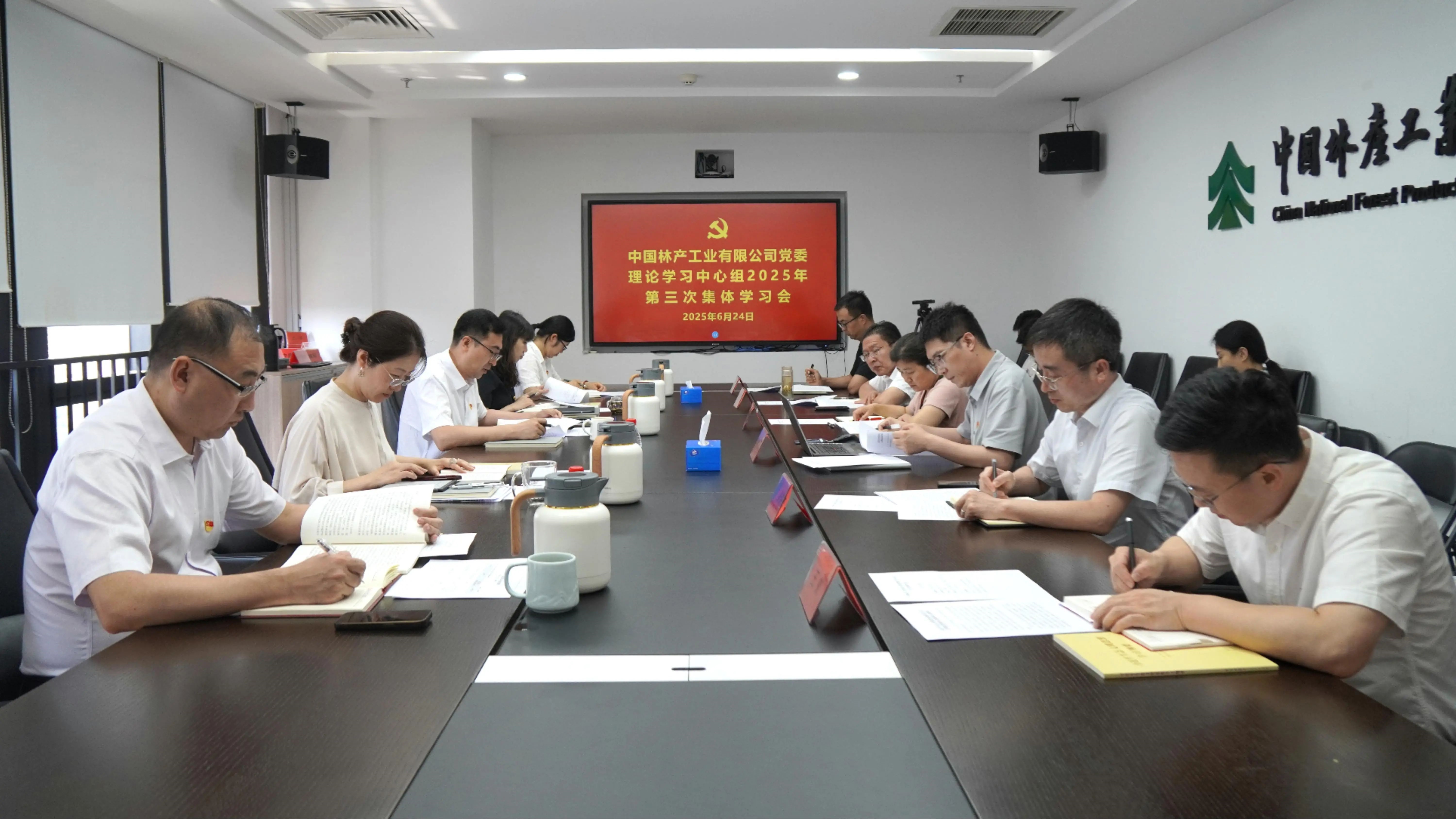 6月24日,中国林产工业有限公司党委理论学习中心组召开2025年第三次集体学习(扩大)会,深入学习贯彻习近平生态文明思想,坚定不移用其武装头脑、指导实践、推动工作。公司党委副书记、总经理吕锦程主持会议并讲话。