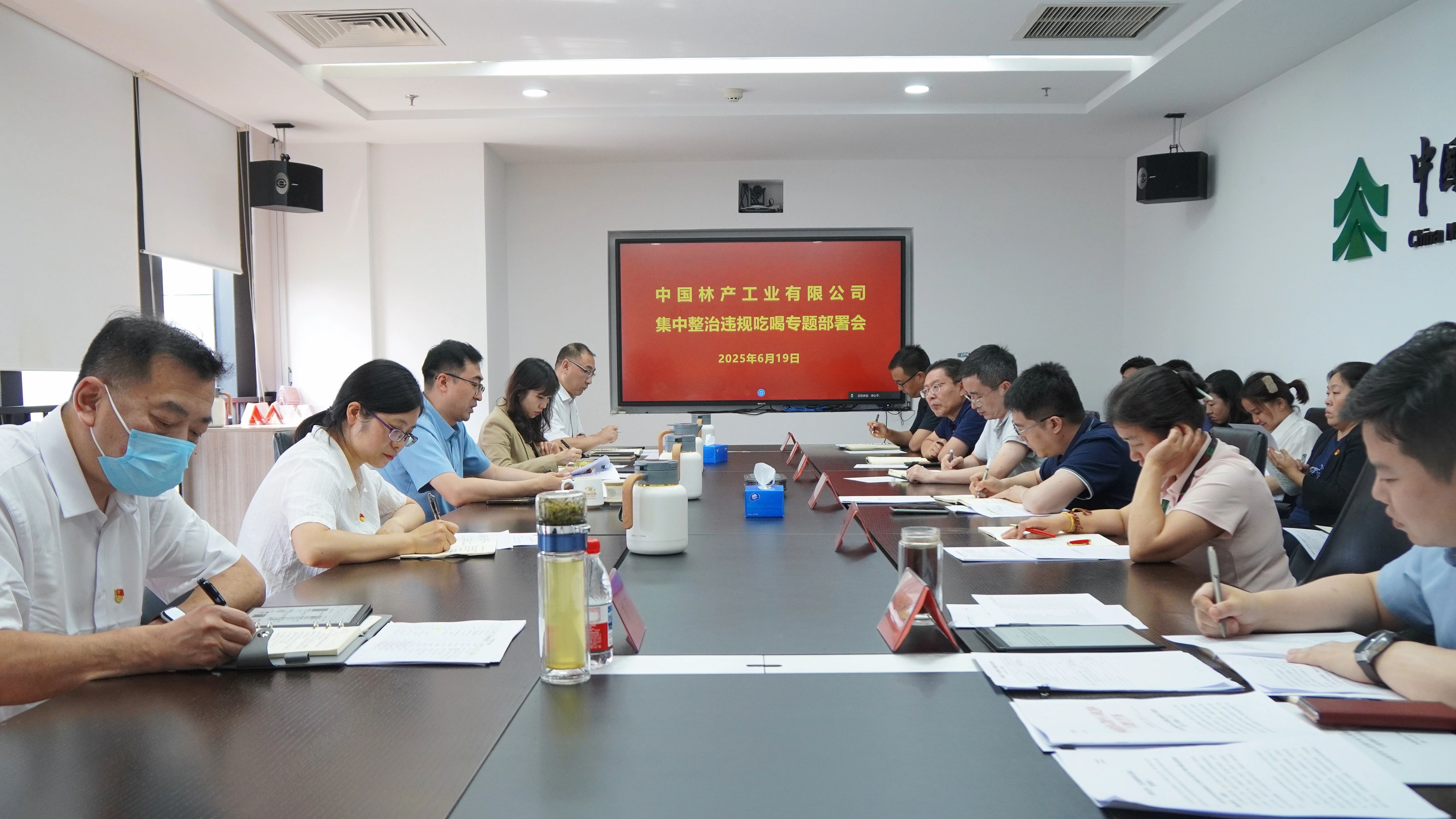 6月19日,中国林产工业有限公司党委在京召开集中整治违规吃喝专题部署会,进一步深入学习贯彻习近平总书记关于加强党的作风建设的重要论述,贯彻落实党中央和上级关于集中整治违规吃喝的部署要求,对公司开展违规吃喝集中整治工作进行部署。公司党委副书记、总经理吕锦程主持会议并讲话。