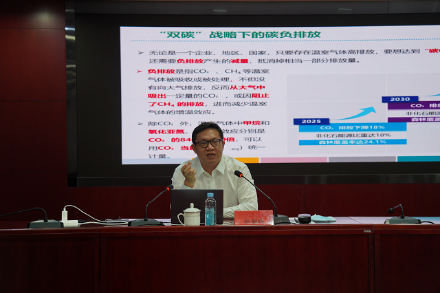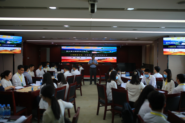 (中节能集团总经济师郑朝晖授课现场) 在培训期间,集团公司还举办了两期中林大讲堂,特别邀请到国家林草局科技司司长郝育军和中节能集团总经济师郑朝晖,分别为新员工带来《依靠科技创新推动林草事业高质量发展》《生物质在“双碳”目标实现中的重要作用》的主题分享。两位行业大咖精彩的授课,使各位新员工们对林草行业科技创新和生物质能源的发展趋势有了更深地认知和透彻的理解。 【团队协作训战沙盘】