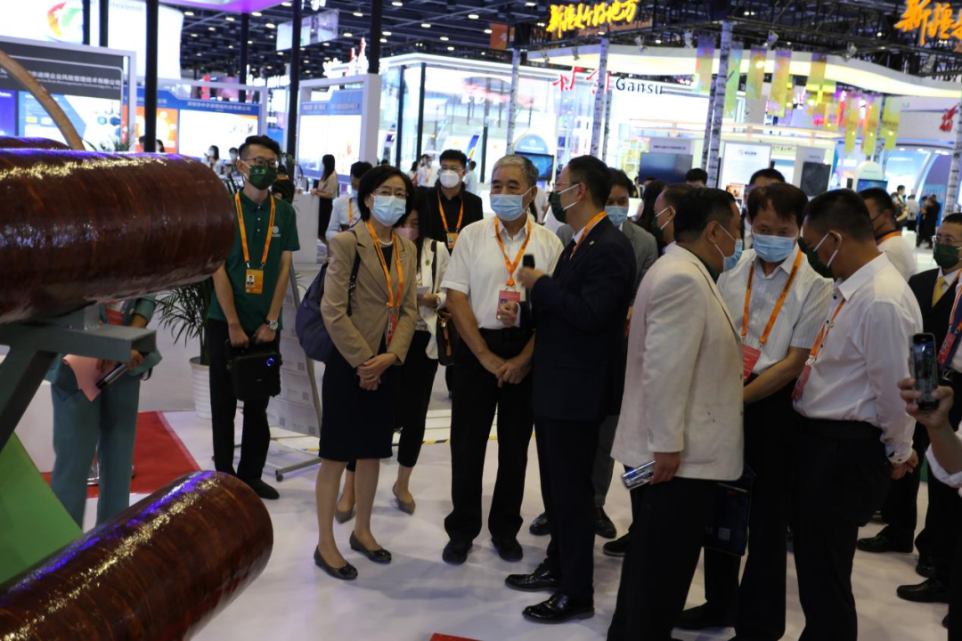 来宾来访 9月1日上午,国家气候变化专家委员会名誉主任、科技部原副部长刘燕华,国家发改委环资司原副司长、国家绿色经济协会专家委员会主任马荣莅临中林集团展台。中林集团相关负责人介绍,竹缠绕复合材料是以竹子为基材、以水溶性氨基类树脂为胶粘剂,采用缠绕工艺加工成型的一种环保生态材料,是中林集团全面贯彻国家“双碳”战略部署的重要成果之一,相比钢铁、塑料等传统的人工材料,具有重量轻、强度高、耐腐蚀、减碳固碳等特性,现在已广泛应用在河渠排水、灌溉等领域。听了负责人的介绍,大家对中林集团近年来在贯彻落实国家"双碳"战略,推进绿色低碳转型取得的成绩表示赞许和认可。