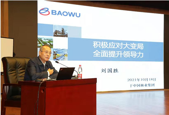 10月18日,中国大连高级经理学院特聘教授、原宝钢集团有限公司党委书记、副董事长刘国胜做客中林大讲堂,以“应对大变局,提升领导力”为题授课。