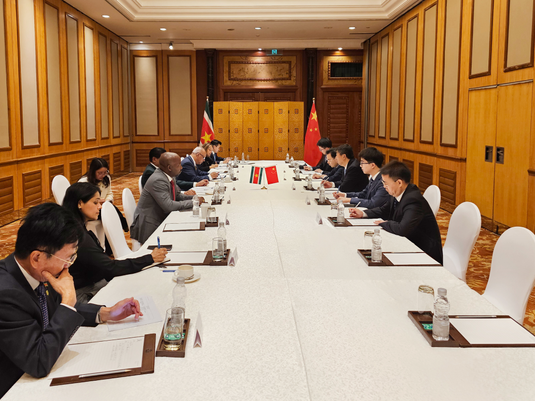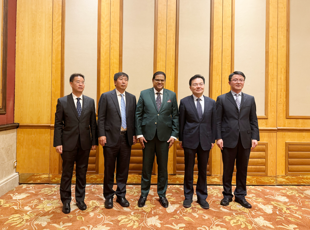 4月14日,来华进行国事访问的苏里南共和国总统单多吉在北京会见中林集团党委书记、董事长、总经理单忠立。双方就林木资源综合开发利用、碳资产开发管理以及清洁能源项目开发等事宜进行了深入交流。苏里南外交、国际商务与国际合作部部长拉姆丁,自然资源部部长阿比亚莫福;中林集团党委副书记、董事张炳南,党委委员、副总经理李留彬、翁文林参加会见。