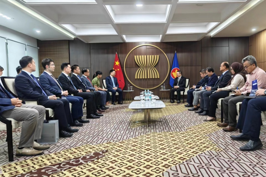 余红辉在会见中简要介绍了中国林业集团发展战略和业务经营情况。他说,中国林业集团认真贯彻落实习近平主席森林“四库”重要论述,大规模开展国储林建设,加快推动森林碳汇经营,着力打造中国最大碳汇经营实体和生态产品价值实现重要运营平台。今年是习近平主席提出的共建“一带一路”倡议十周年。中国林业集团希望发挥自身优势,加强与东盟各国在减污、降碳领域的深度合作,共同推动中国—东盟碳库建设和东盟林业碳汇经营开发以及探索更多生态产品价值实现路径,为区域发展繁荣提供更多强劲动能。 高金洪欢迎余红辉一行到东盟秘书处访问交流。他说,应对气候变化和实现可持续发展是中国与东盟国家面临的共同而紧迫的任务之一。近年来,中国为应对气候变化投入了大量资源,不断推动实现绿色低碳可持续发展。今年是中国提出建设更为紧密的中国—东盟命运共同体10周年。随着彼此合作的不断深入,东盟期待与中国建设更多稳定的合作平台与机制。希望中国林业集团与东盟秘书处建立直接沟通机制,就中国—东盟碳库建设、森林碳汇开发等领域深度对接,深入开展务实合作,尽快推进合作项目落地。