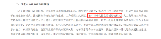中林木托盘静态展示 今年3月25日,中共中央、国务院发布了关于加快建设全国统一大市场的意见,在第八条建设现代流通网络细则中明确提出推广标准化托盘带板运输模式。