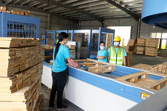 木托盘生产作业中 福州国林林产品有限公司围绕木托盘项目运营需求,组建专业运营团队,已在产业园内建成第一个运营网点,计划于2023年底前完成福建省其他八个地市的运营网点建设。公司规划将莆田地区作为福建区域的一级运营中心,本地仓建成并投入操作面积可超1万平方米,其他网点规划租赁仓库2000平方米,形成完善的福建省内木托盘成品仓库网络,最终实现木托盘运营能力500万片,成为全国最大的省级运营网络的经营目标。