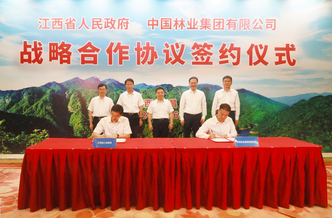 会谈后,双方举行了签约仪式。根据协议,双方将充分发挥各自优势,以国家储备林建设、林业产业发展为主要抓手,重点在碳汇开发和交易,油茶种植和加工,竹缠绕技术加工利用和推广,重型木结构加工利用,生物质能源开发等方面开展合作,共同助推江西现代林业产业示范省建设,更好实现生态美、百姓富、产业兴的有机统一,提升林业在经济社会发展中的贡献率。 江西省政府秘书长、办公厅主任王国强,省林业局、发改委、财政厅、商务厅、国资委主要负责人;中林集团森林资源管理部、战略投资部有关负责人参加活动。 当天,中林集团还与中国农业发展银行江西省分行在南昌签署了战略合作协议。双方表示,将围绕厚植江西生态优势,推动“生态产业化,产业生态化”,探索多样化合作模式,建立长期合作关系,为推进江西国家生态文明试验区建设,助力江西经济发展“高质量”和生态环境“高颜值”协同并进,打造美丽中国“江西样板”提供强力支撑。