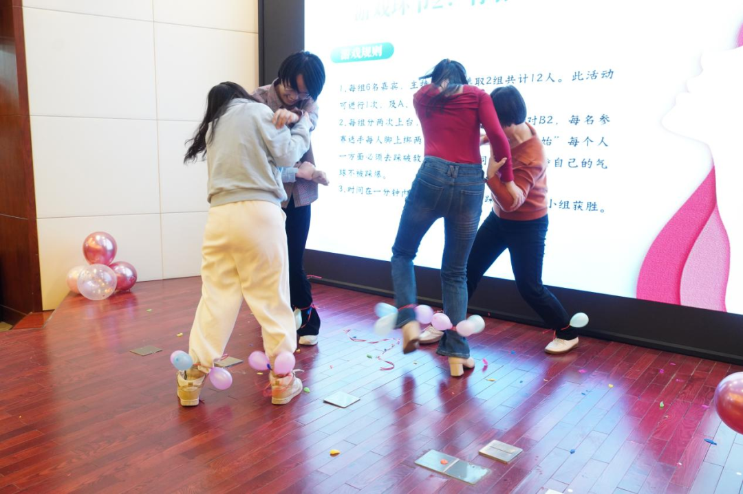 联欢会上,还进行了互动游戏和幸运抽奖活动,来自集团总部及部分子公司的近两百名女职工观看表演和参加活动。