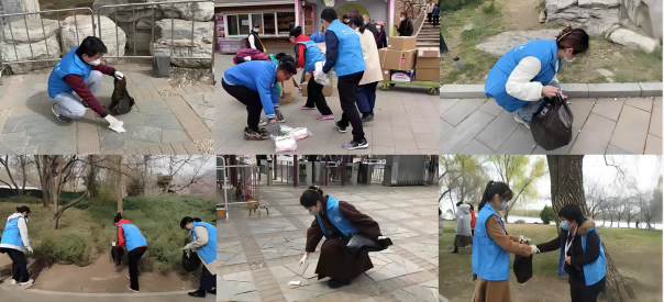 阳春三月,正值玉渊潭樱花盛开。志愿者们分工合作,干劲十足,积极投入到各类志愿服务活动中。他们身着蓝马甲、手拿垃圾袋,搜寻清理公园内的杂草、碎纸屑、绿化带里的烟头等垃圾;积极开展文明旅游宣传引导,呼吁广大游客文明赏樱,自觉遵守园区规定,看花不折花;协助开展游客道路指引服务,搬运樱花文创品;在人群中发现年迈或行动不便的游客时,也会及时帮扶。