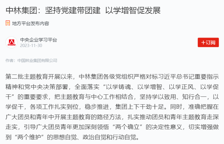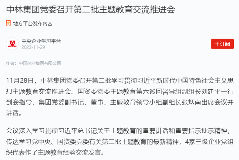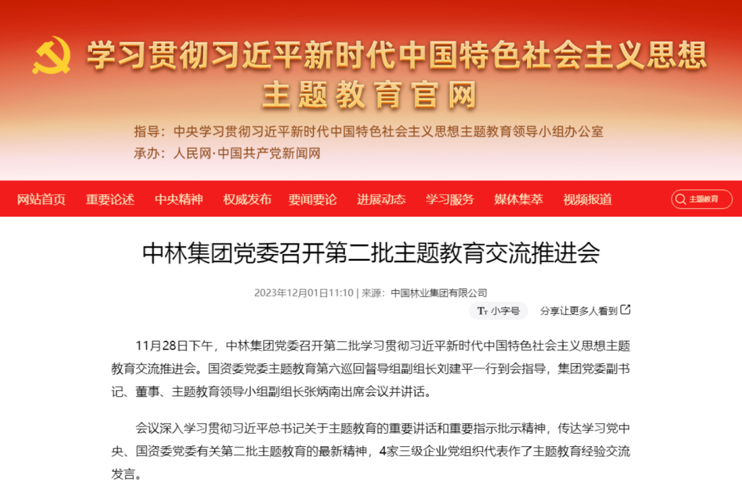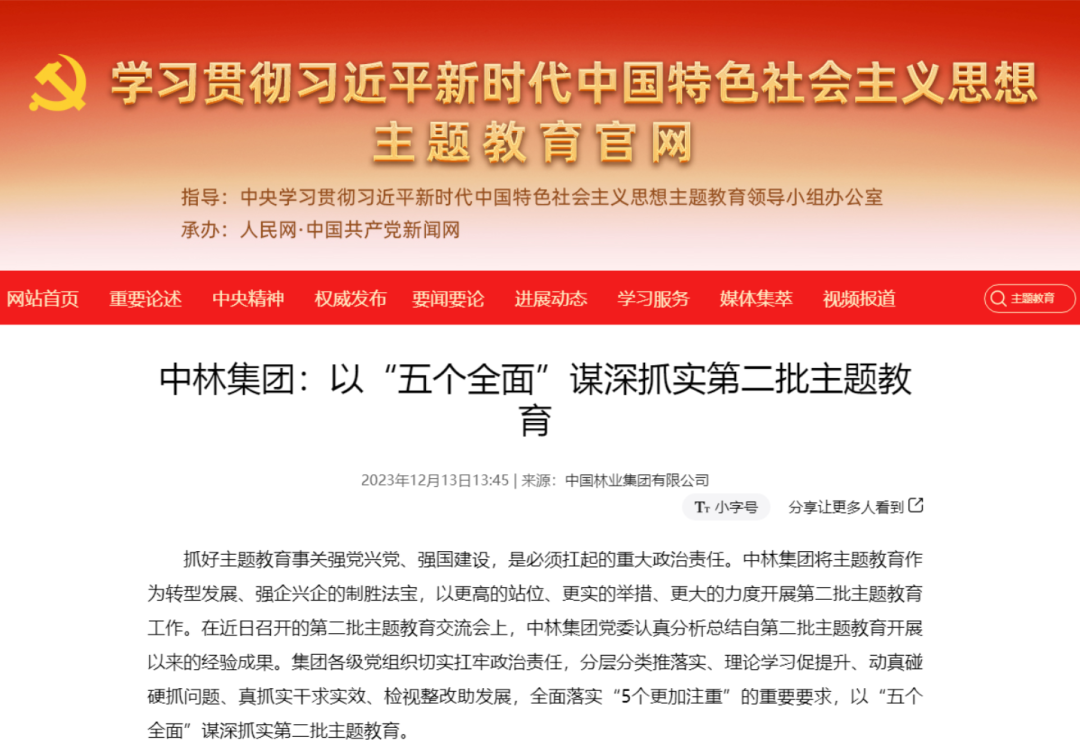 赞!中央主题教育官网、“学习强国”连续刊发中林集团主题教育成果成效 |